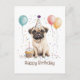 Cute pug birthday illustrations featuring playful pugs celebrating a party. Perfect for pug lovers, dog parents, and pet lovers looking for fun dog birthday designs and gifts.