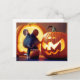 Postal Happy Halloween. Kleine niedliche Maus mit Kürbis