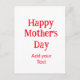 Postal Happy mother's day red add text simple minimal mom