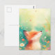 This enchanting postcard features a blissful red fox with its head tilted back in a moment of pure serenity. The artwork is rendered in a dreamlike watercolor style, utilizing a soft and luminous palette of warm orange, mint green, and golden yellow. The fox is surrounded by delicate spring wildflowers and shimmering light particles that create a magical, airy atmosphere. With its peaceful vibe and painterly textures, this piece captures the quiet beauty of nature. This postcard is a perfect choice for sending a cheerful hello, a sweet birthday wish, or a "thinking of you" note to any wildlife lover.