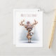 A cheerful little reindeer stands on a snowy surface, wearing a snug purple hat. The reindeer holds a warm cup in its hooves, exuding a sense of joy and warmth. Adorned with glowing lights wrapped around its antlers, this scene captures the essence of winter festivities. The background is softly muted, enhancing the festive spirit.