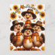 Send a smile this Thanksgiving with this charming greeting card! The design features a joyful turkey family dressed for the season, surrounded by warm autumn tones, leaves, and sunflowers. It’s a delightful way to share gratitude and holiday cheer with loved ones. Perfect for friends, family, or anyone who deserves a festive wish!