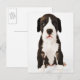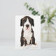 Postal Harlequin Great Dane cachorro sobre fondo blanco