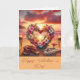 Una postal romántica de estilo hawaiano para El día de San Valentín y más. La imagen cuenta con una hermosa playa hawaiana al atardecer y un lei en forma de corazón.