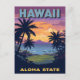 Postal Hawaii Aloha State Vintage Sunset Palm Trees