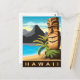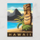 Postal Hawaii, estatua de Tiki en la playa, viajes