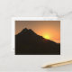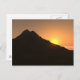 El sol acaba de empezar a caer tras una silueta de montaña en este ilustracion 3D de puesta de sol en un paraíso tropical insular.