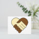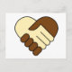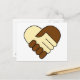 Un hombre negro y un hombre blanco estrechando las manos. Símbolo o logotipo en forma de corazón en la postal