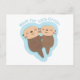 Una tarjeta de felicitación con una linda pareja de nutrias marinas acostadas en el agua y tomándose de las aletas para no perderse. El dulce juego de palabras de amor dice "Hecho el uno para el otro". Perfecto para parejas, novio y novia en el día de San Valentín, aniversario y ocasiones especiales de amor.