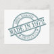 Postal Hecho en 1972 Año de nacimiento Sello de goma redo