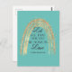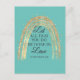 Cita Corinthians que dejen que todo lo que hagan se haga con amor". Con el arco iris al estilo de Boho purpurinoso sobre un fondo turquesa.