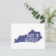 La forma del estado de Kentucky rellena de azul oscuro y las palabras Hecho en Kentucky en letras blancas y negritas en esta postal es una excelente manera de recordar a un kentuckiano dónde nació y creció.
