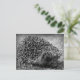 Foto en blanco y negro de un erizo que camina sin trabas por el jardín