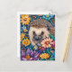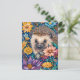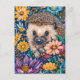 Un bonito dibujo de un erizo sentado en un parterre florido con muchas flores florecientes, rodeado de colores vivos.