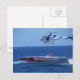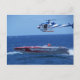 El corredor de lancha motora en alta mar se transportó en avión con un helicóptero de película justo encima.