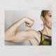 AssetID: 118739768 / Imágenes de Sollina / Jóvenes flexiones femeninas rubias bicep músculo mientras sonríen.