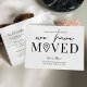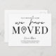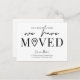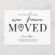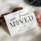 Permita a sus clientes, empleados y proveedores de entrega conocer su nueva dirección de oficina con este minimalista Diseño de Postales empresas Hemos Mudado. Con diseño en blanco y negro con fuentes de moda, espacio para su nombre de negocio, dirección nueva, detalles de contacto y horarios de apertura, esta tarjeta postal moderna que hemos movido es una manera fácil de actualizar a clientes y proveedores sobre su cambio de dirección.
