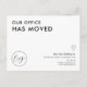Permita a sus clientes, empleados y proveedores conocer su nueva dirección de oficina con este profesional Hemos trasladado el diseño de la postal del logotipo comercial. Con un diseño minimalista en blanco y negro con fuentes clásicas, espacio para el logotipo de su empresa, nueva dirección, detalles de contacto y horarios de apertura, esta tarjeta postal moderna que hemos movido es una manera fácil de actualizar a los clientes y proveedores de entrega sobre su cambio de dirección.