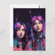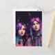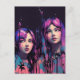 Arte generado por IA de dos hermanas con cabello púrpura una pintura con salpicaduras de pintura