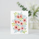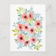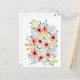 Flores color agua rosa y hojas verdes/azules ilustracion en la postal.