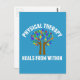 La Terapia Física Se Curará Desde Dentro. Una linda fisioterapeuta cita una postal con un hermoso árbol con hojas de arco iris y ayudando manos como extremidades de árbol que los elevan. Motivacional y hermoso regalo para un PT.