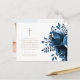 Hermosa tarjeta postal de agradecimiento por bautizo floral azul y cruz que presenta flores de estilo vintage azules y una simple cruz dorada con una foto. La parte trasera de esta tarjeta de agradecimiento por bautizo de denominación católica y cristiana incluye su dirección de devolución personalizada.