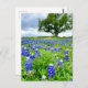 Una hermosa fotografía de redes azules de Texas en un campo de la naturaleza hace una postal de bonito para un texano que ama las flores silvestres. Es la flor del estado y trae gran orgullo.