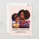 Celebre el vínculo entre una madre negra y su hija con esta obra de arte conmovedora e inspiradora. Con un abrazo cariñoso y sonrisas radiantes, esta tarjeta postal destaca la fuerza, la belleza y la conexión que comparten. Perfecto para honrar la maternidad, la diversidad y el amor familiar.