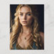 Postal Hermosa mujer rubia con vestimenta azul y dorada
