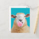 Postal Hermosa oveja de fantasía masticando goma de masca