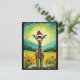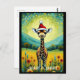 Postal Hermosa pradera de flores Giraffe Santa Navidades