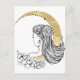 Postal Hermosas flores de luna mujer ilustracion purpurin