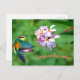 ¡Hermosa foto de un pájaro de abejas europeo colorido y vibrante! El pájaro busca comida mientras vuela sobre la flor blanca y rosa. ¡El apicultor europeo combina el azul, el rojo, el rosa, el violeta, el amarillo, el naranja y el verde!