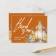 Tarjeta de agradecimiento de boda floral naranja de hermosas hojas de otoño. Expresa tu gratitud con estilo con esta tarjeta de agradecimiento de boda floral naranja de hermosas hojas de otoño, perfecta para parejas que celebran su boda de otoño. Con un encantador diseño de vibrantes hojas de otoño y suaves flores naranjas, esta tarjeta postal captura la esencia de una acogedora temporada de otoño, lo que la convierte en la forma ideal de agradecer a tus invitados por su amor y apoyo.
