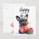 Hermoso bulldog francés, vestido rosa, pastel de cumpleaños Postal
