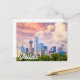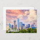Esta vibrante postal de viajes cuenta con una fotografía con vistas a la ciudad de Dallas, Texas, al atardecer. Esta postal sería un saludo verdaderamente cálido para los mejores amigos y familiares.