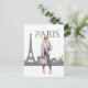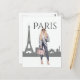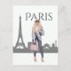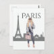Postal Hermoso Chica rubio en París con la Torre Eiffel