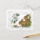 Envíe saludos dulces de Navidad con esta adorable escena de invierno vintage que incluye dos conejitos en la nieve, una garbanza y ramas nevadas de pino y holly. ¡Disfrútenlo!