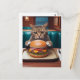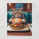 Postal Hermoso gato en una cena con hamburguesa de queso