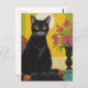 IA generó arte de un hermoso gatito negro con flores rosadas en un jarrón negro