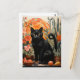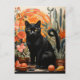 Postal Hermoso gato negro en las plantas de hogar sigue s