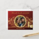 Esta tarjeta de felicitación de Rosh Hashaná presenta un diseño lujoso con una paleta de colores rojo intenso y dorado. En la parte superior, el texto "Shanah Tovah Um'tukah" está escrito en elegante letra cursiva dorada, que significa "Un año bueno y dulce". Alrededor del marco de la foto circular, intrincadas ramas y follaje dorados se extienden hacia afuera, creando un borde simétrico y ornamentado que añade riqueza y sofisticación a la tarjeta.