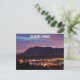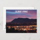 Si le gusta la ciudad de Colorado Springs, podrá admirar esta hermosa tarjeta con el nombre de la ciudad en blanco, nubes violetas al atardecer sobre la ciudad y la montaña Cheyenne al fondo.