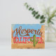 Hesperia California diseño de viajes neo vintage en un divertido estilo retro personalizado con el desierto, un cactus y rocas. Azul, marrón y rojo con cactus verde.