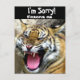 Un tigre con la boca abierta, los dientes mostrando, genial por: Perdón, perdóname, hey! y más.