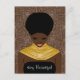 Mujer negra mirando hacia abajo con collar tribal de oro y cabello largo y natural. Conciencia cultural para el hermoso patrimonio africano.
