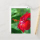 En esta impresionante imagen, una flor de hibisco rojo se realza con un fondo verde moteado.