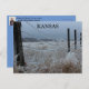 Una toma de hielo en una valla con alambre de púas y un día nublado. Eso es al norte de Hutchinson Kansas USA en el país. Eso está en una TARJETA POSTAL.