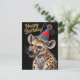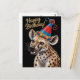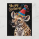 Postal hiena manchada con sombrero de cumpleaños