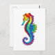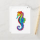 Arco de arcoiris, caballito de mar poligonal sobre fondo blanco. Tatuaje brillante.